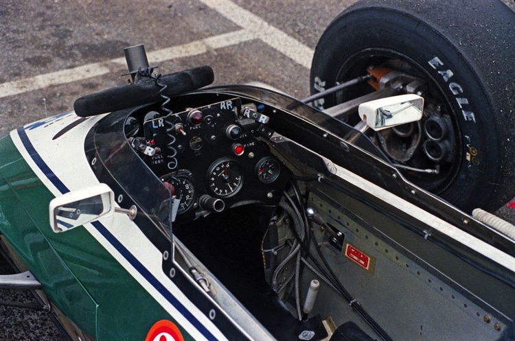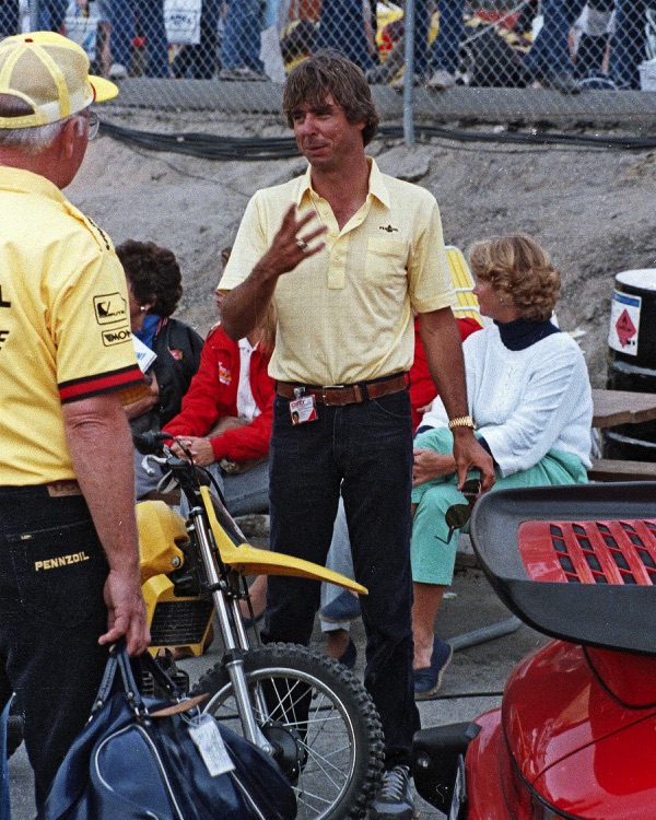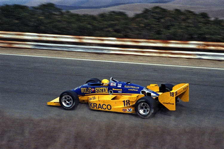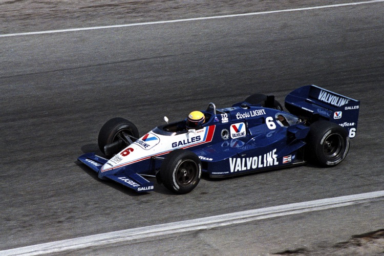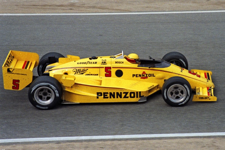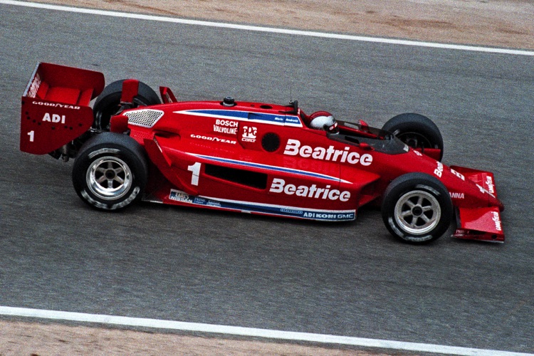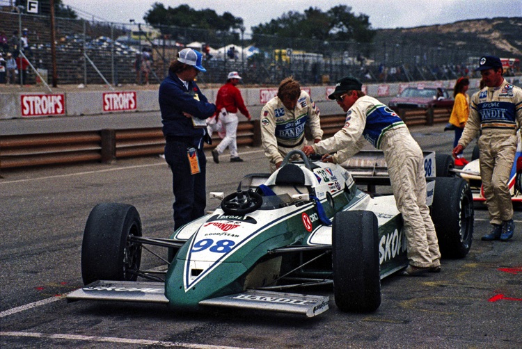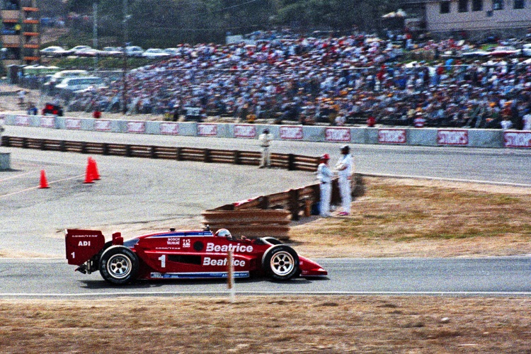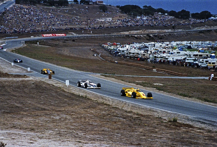 Al Unser Sr leads the field on the old short track layout at Laguna which went straight from T2 and uphill to what is now T6
