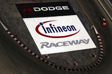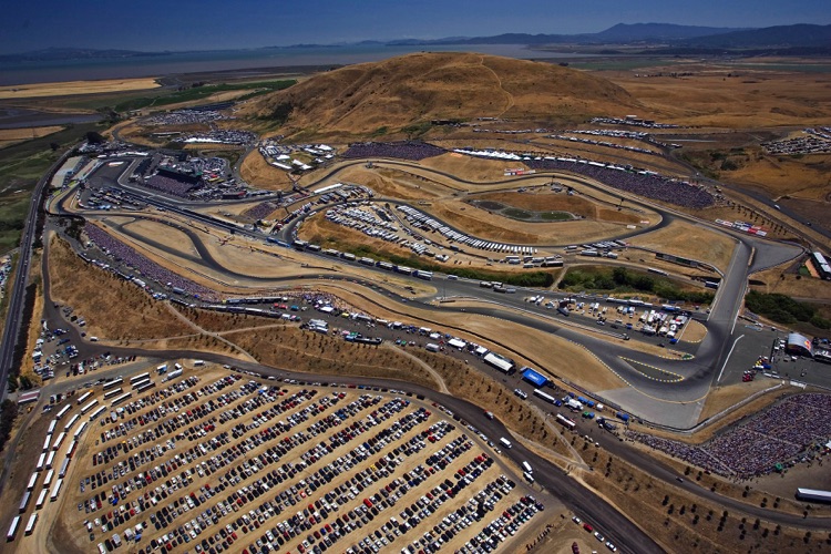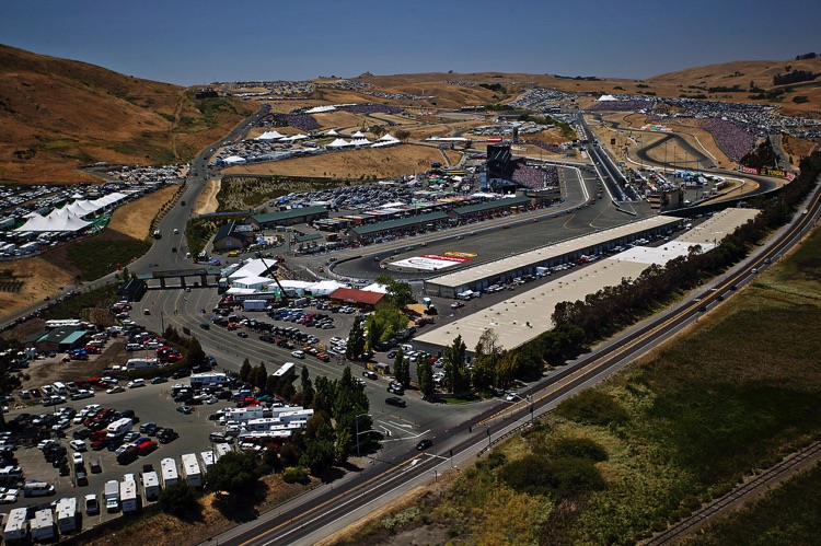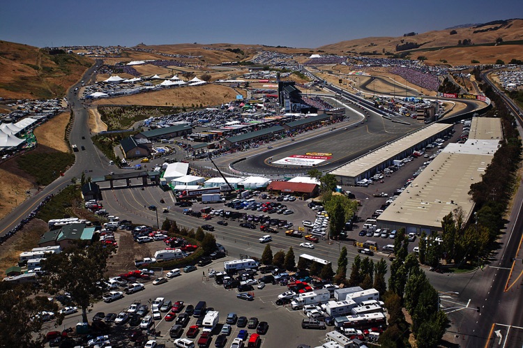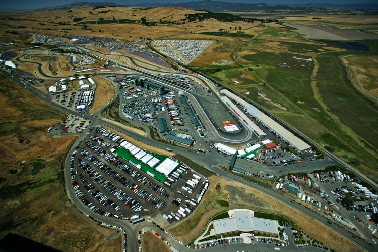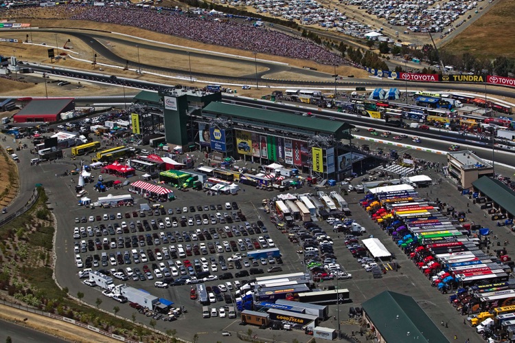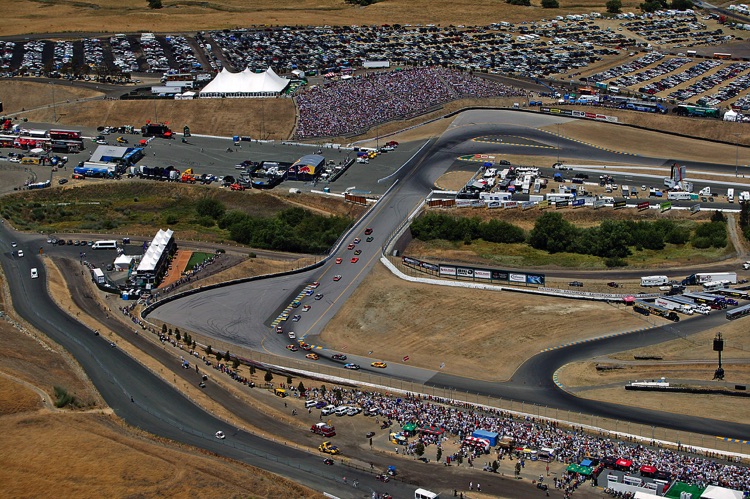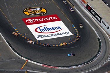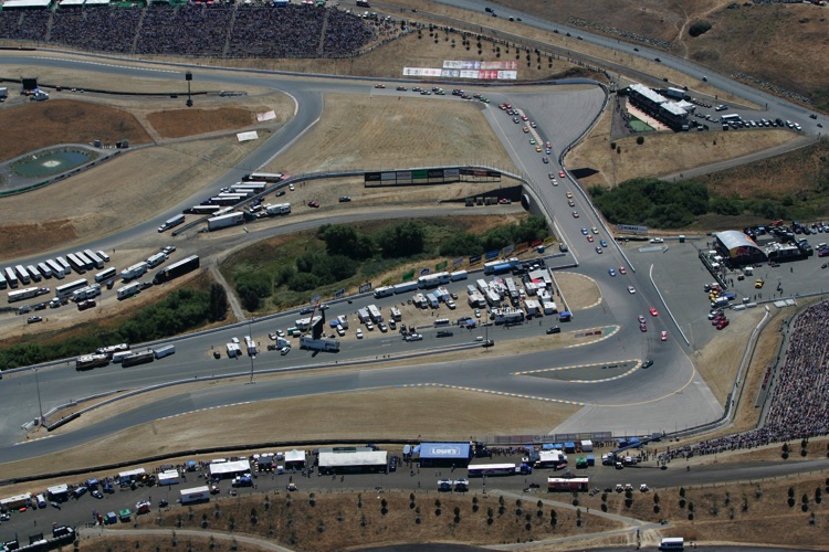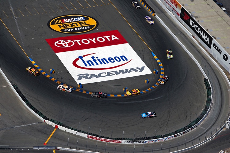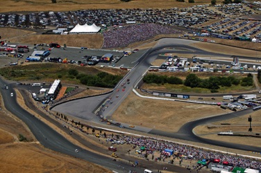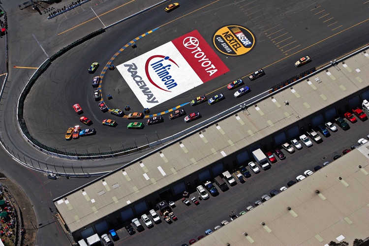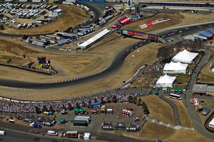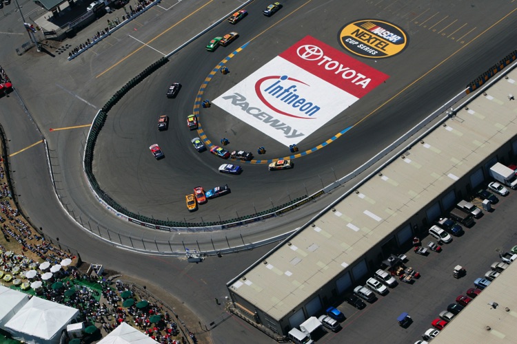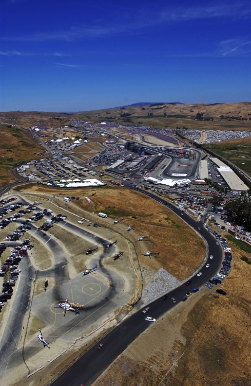 One of my favorite tracks - Sears Point Raceway in Sonoma, CA. It was my effective base of operations for almost 20 years. I often photographed the early laps of NASCAR Events at Sears Point from a helicopter. This required me - and all my equipment - to be strapped in securely as I was shooting down through an open door. The Track does not want the liability exposure of a heavy camera, lens - or Photographer - falling from a great height onto the Circuit or Spectators... Here are a few images which show the Sonoma NASCAR track from a unique vantage point.