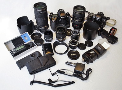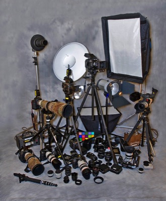 Back in the late 1960's, my first camera was an early Nikon F. Since then, I have used a wide variety of cameras - but for 30 years most of them were Nikons. Here are some of the camera systems I used over the years - starting with Nikon F2s & F3s in the 1980's & 90's. I skipped the F4 and belatedly began the transition to Auto Focus in the mid 90's with the F5. In the late 90's, I went Digital with the 6MP Kodak DCS 460 followed by the first Nikon D1 in 2000. In rapid succession, these were replaced by Nikon's D1H, D1X, D2H & D2X models. In the early 2000's I began a switch to predominantly using Canon equipment - buying a Canon EOS 1V, Canon 1D and the 11MP 1DS - a full-frame body that was not available from Nikon at that time. The decision was cemented by Canon's excellent range of Tilt-Shift lenses which were invaluable for Real Estate and Product work. The legacy Medium Format Hasselblads and Mamiyas were used less & less after we went Digital - although the Mamiya 645AFD saw extended use because it could also be used with a range of rented Digital Backs. When I retired 14 years ago I sold all of my long Telephotos and newer Camera bodies while they were still worth a significant sum - but retained some equipment that had sentimental value. I still enjoy using my vintage film and digital cameras but nowadays you are just as likely to find me using an iPhone...